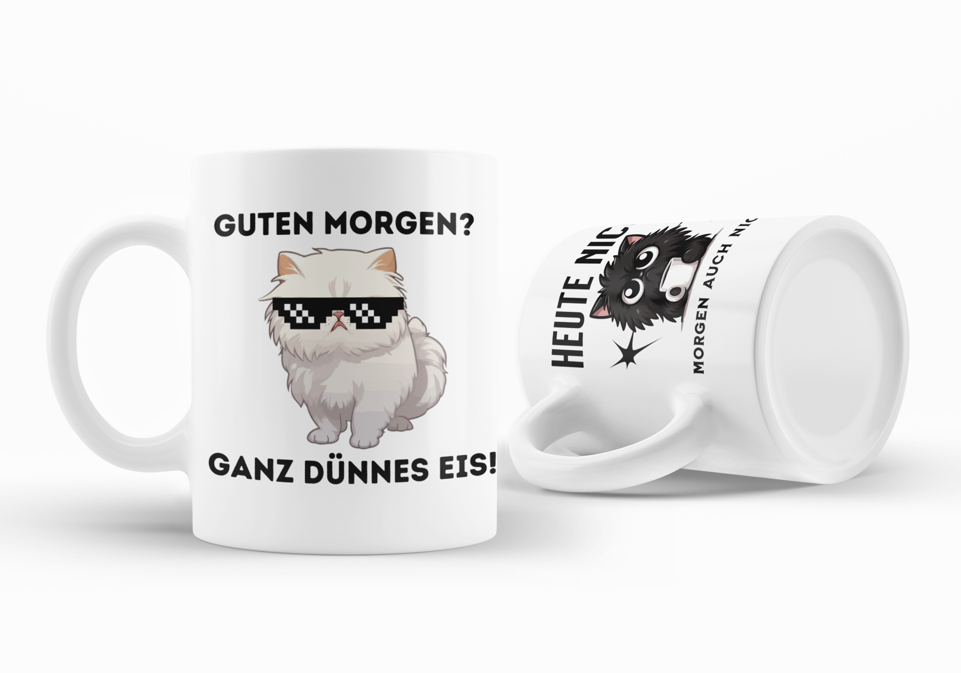 Nicht jeder Morgen beginnt mit Sonnenschein und guter Laune – manchmal braucht es einfach eine ordentliche Portion Kaffee und Humor. Genau dafür sind unsere witzigen Katzen-Tassen gemacht!