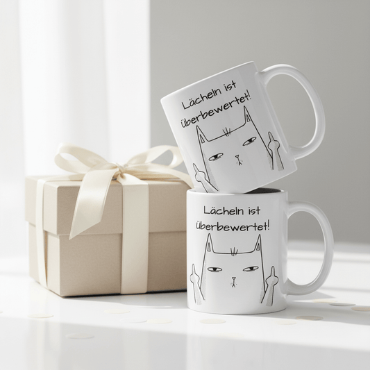 Lächeln ist überbewertet – freches Katzen Statement | Sarkasmus Geschenk für Büro & Alltag