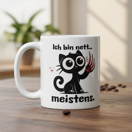 Lustige Katzen Tasse „Ich bin nett… meistens.“ – Humor Geschenkidee für Katzenliebhaber & Kollegen