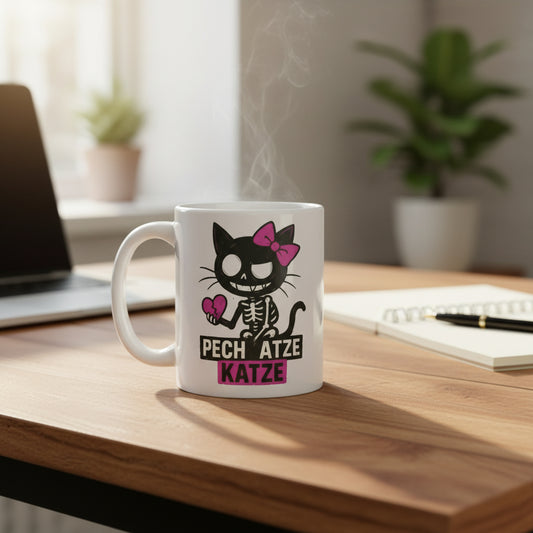 Pech Atze Katze – Skelett Katze mit gebrochenem Herz, schwarzer Humor Geschenk