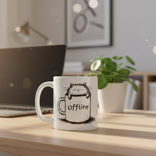 Offline – müde Katze Minimalmotiv | Digital Detox Spruch, Ruhe & Pause Statement Geschenkidee