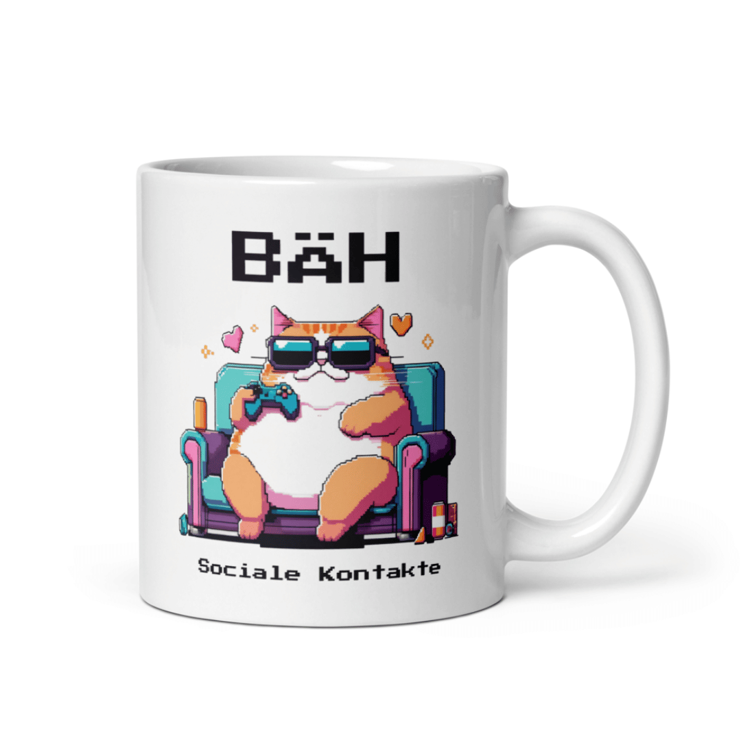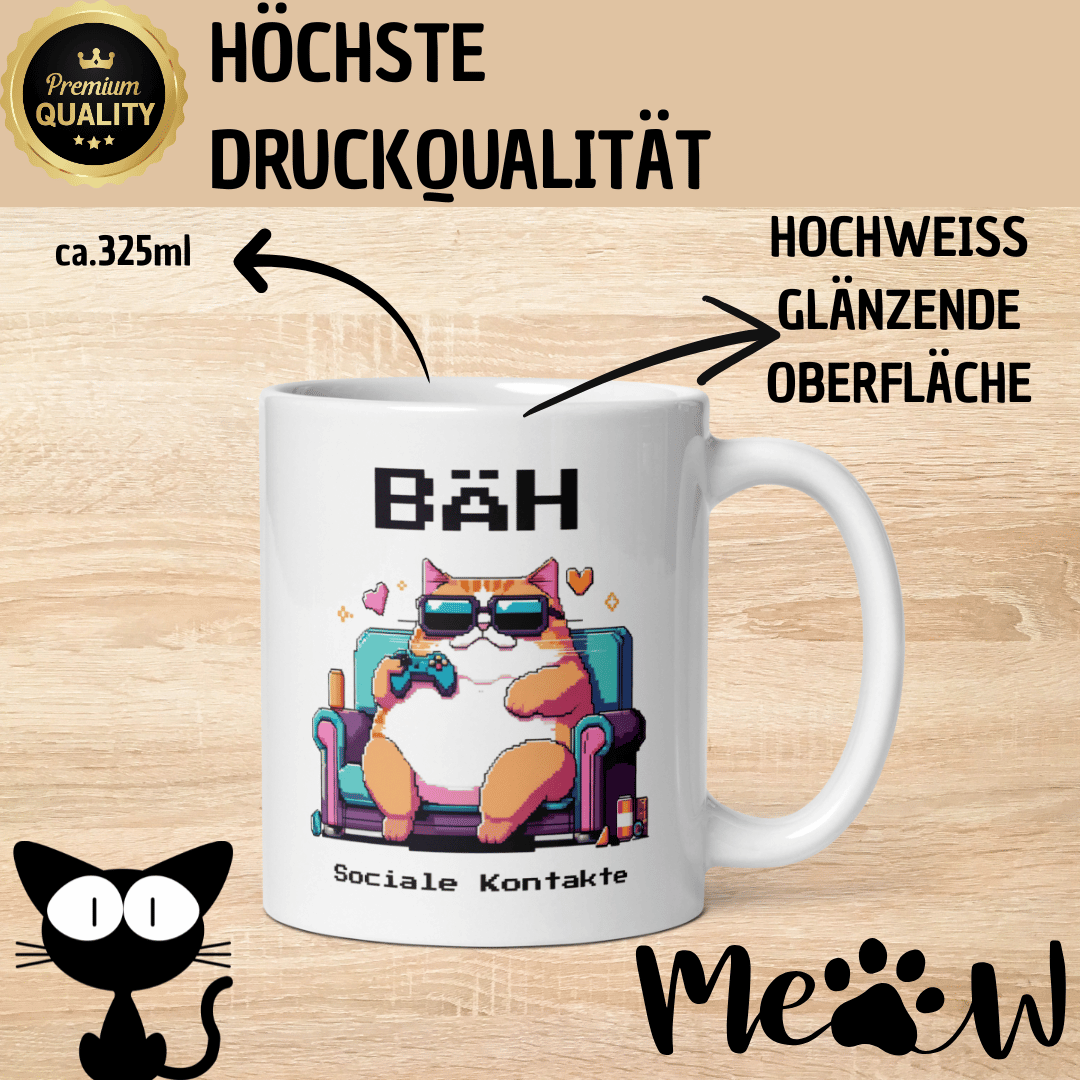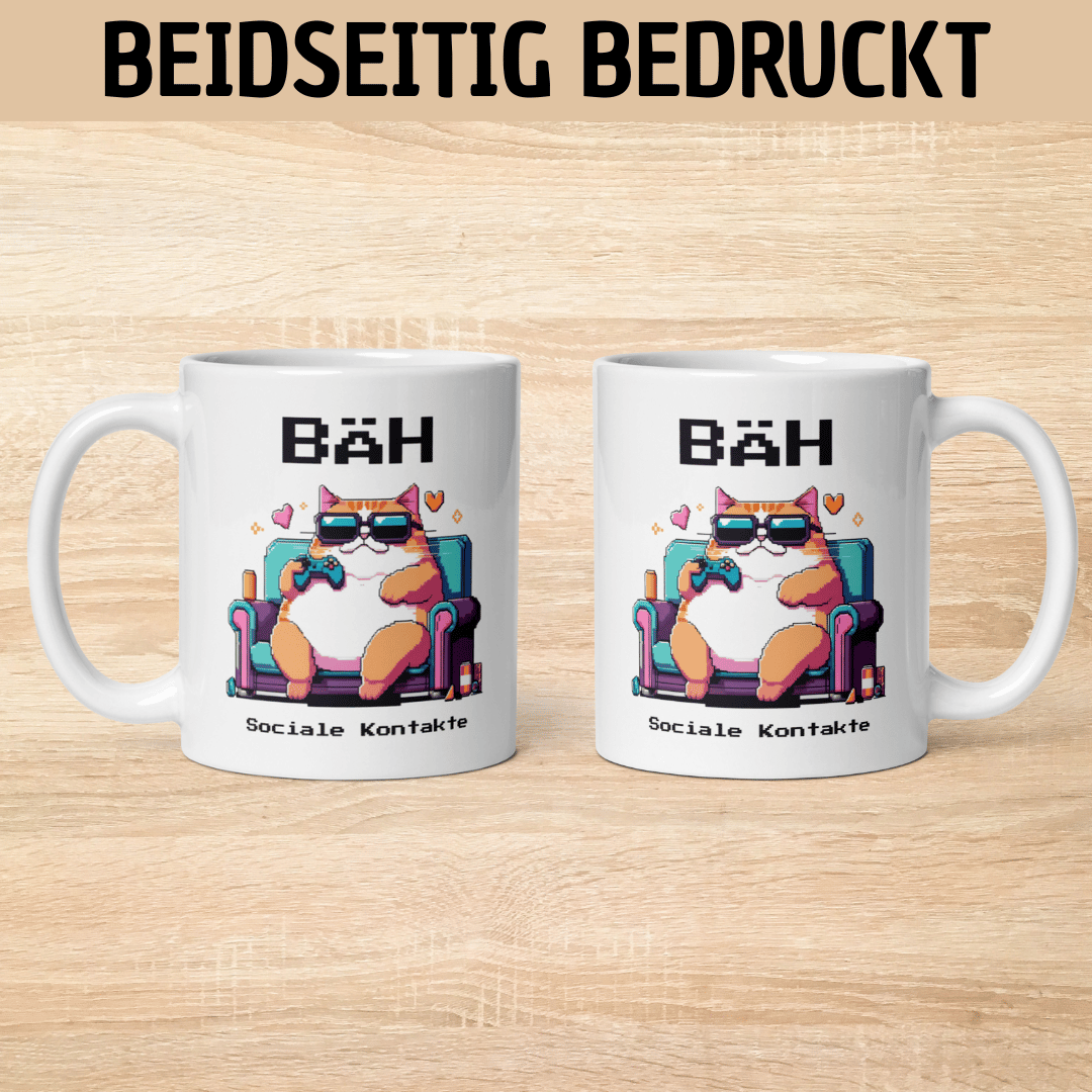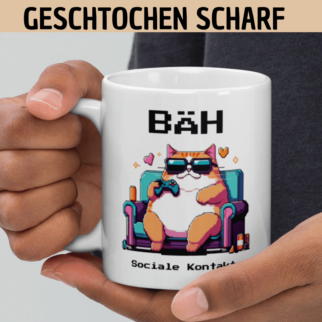 BÄH – Soziale Kontakte Tasse | Lustige Gaming-Katzen-Tasse für Anti-Social Vibes