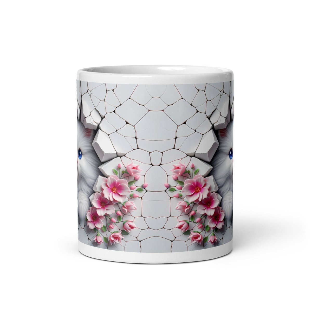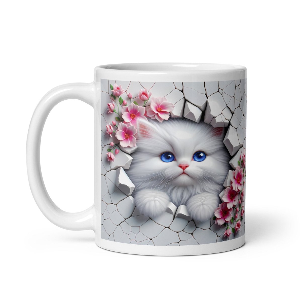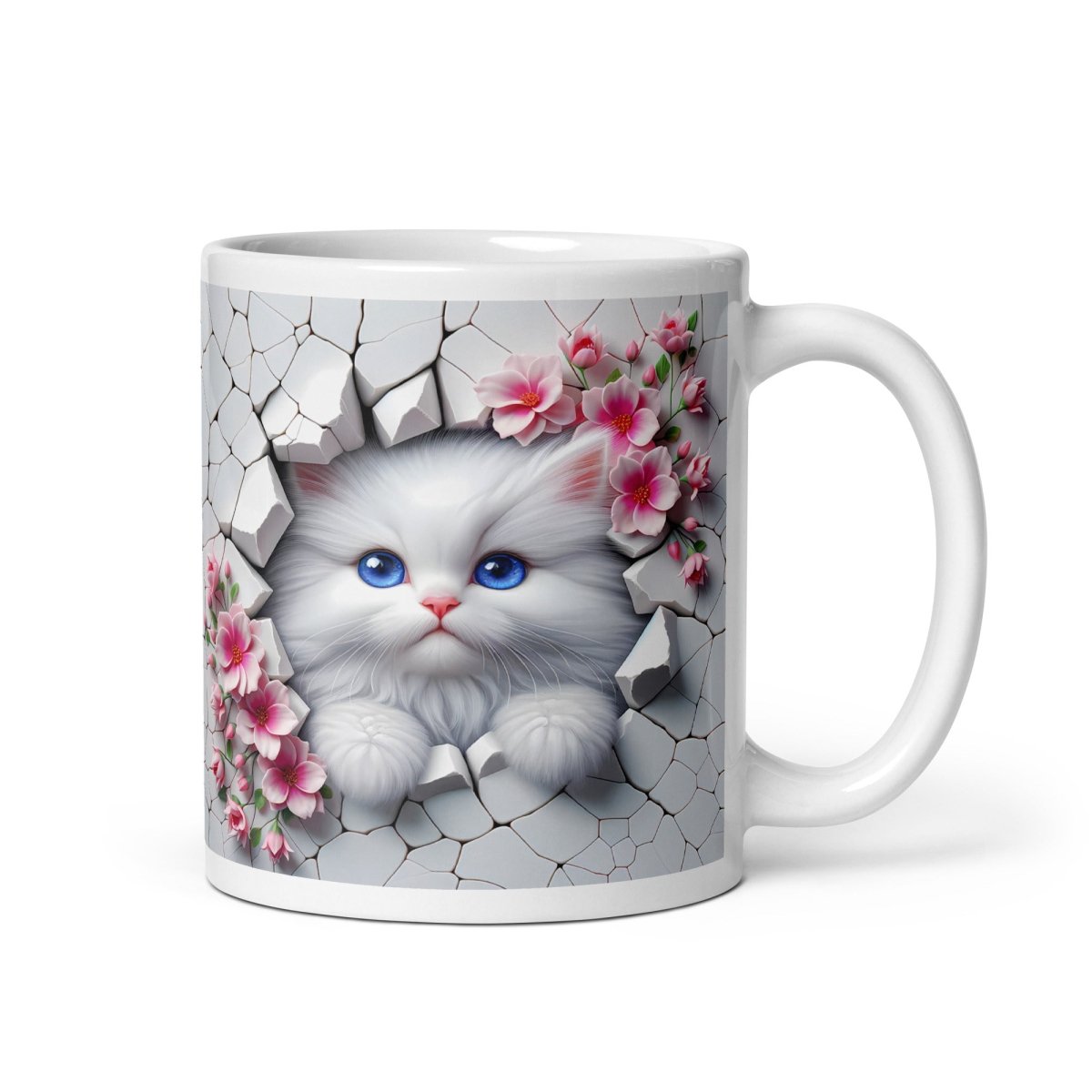 Blauäugige Katzen Tasse – Verspieltes Motiv mit Kirschblüten für Katzenliebhaber