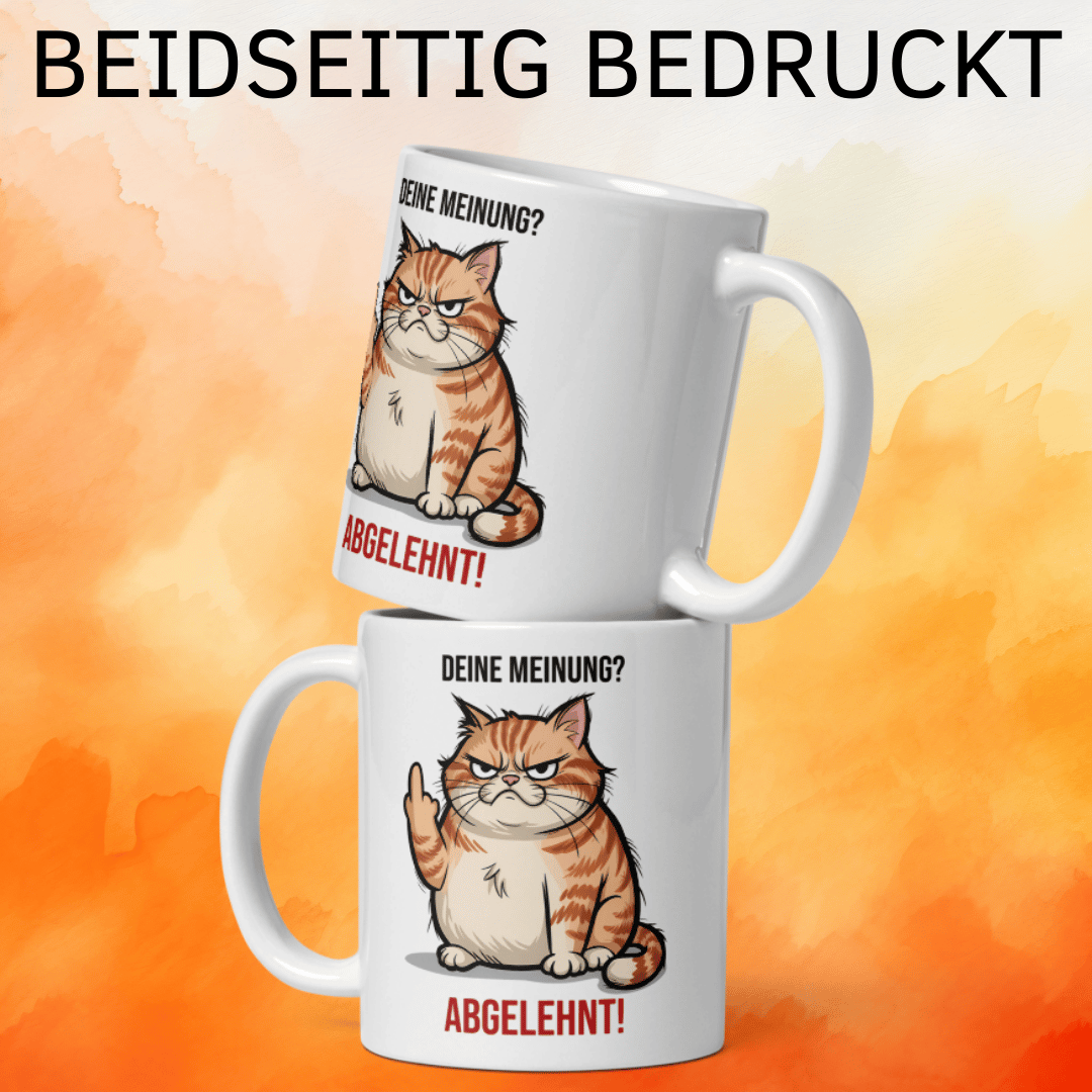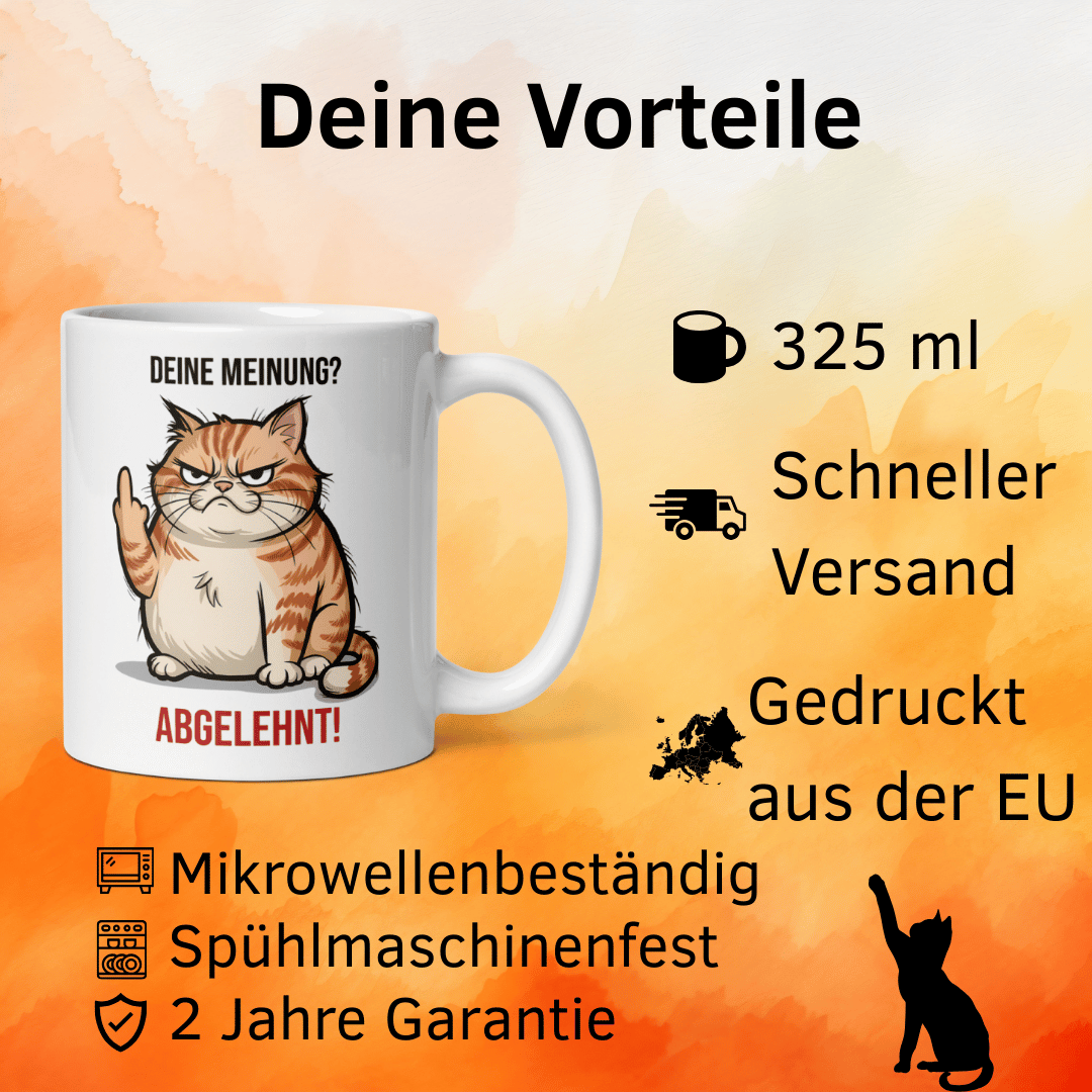 Lustige Katzen Tasse – Deine Meinung? Abgelehnt! – Humorvolles Geschenk für Büro & Katzenfans