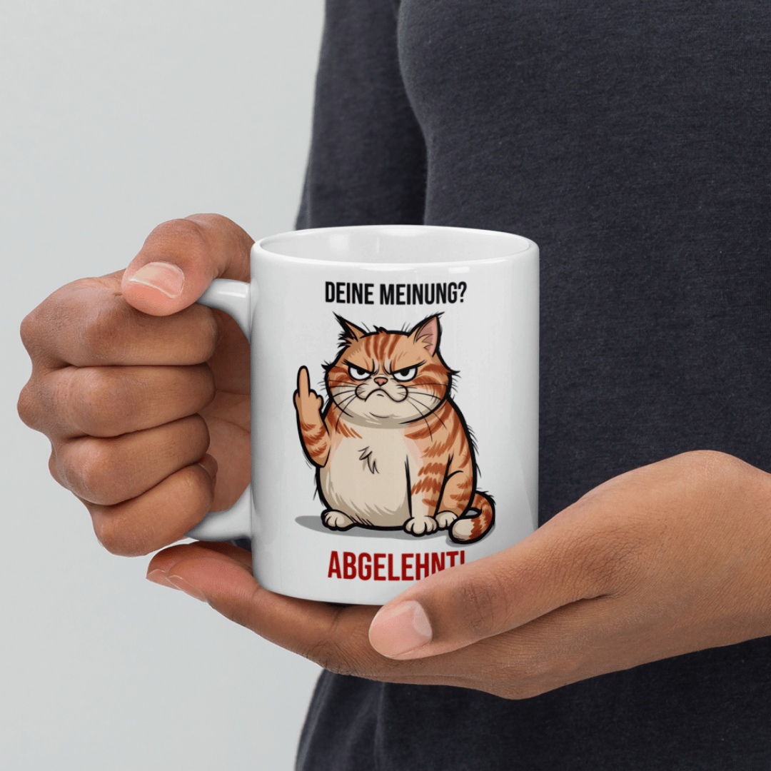 Manchmal braucht es keine langen Diskussionen – nur eine Tasse, die alles sagt. Mit der lustigen Katzen Tasse „Deine Meinung? Abgelehnt!“ hast du den perfekten Begleiter für Büro, Homeoffice oder entspannte Kaffeepausen.